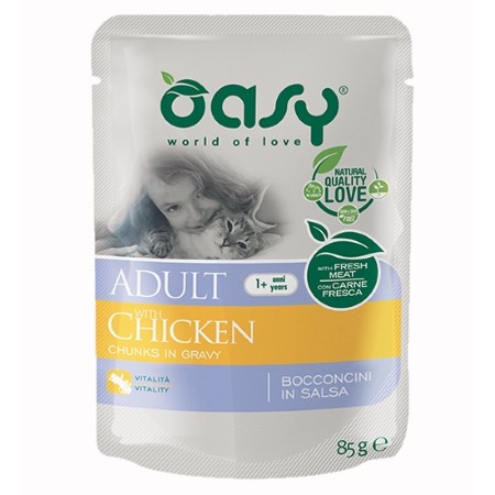 - I Bocconcini in salsa Oasy Adult supportano salute e vitalità nei gatti adulti!
