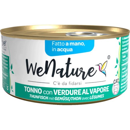 Alimento umido per gatti adulti a base di tonno con verdure, creato con i migliori ingredienti che la natura offre, nel rispetto dell'ambiente. Cotto a vapore e lavorato a mano, è presentato in acqua per lasciare puro il gusto delle materie prime selezionate: genuine, semplici e naturali. Il tuo inseparabile amico si leccherà i baffi dalla bontà.