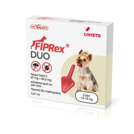 Per il trattamento di cani di peso corporeo tra 2 e 10 kg. Da utilizzare contro le infestazioni da pulci, da sole o in associazione con zecche e/o pidocchi masticatori. Trattamento delle infestazioni da pulci (chenocephalides spp.).