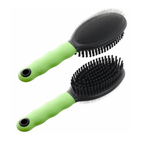 Molto pratico, dotata di manico in plastica, questo prodotto ha un duplice utilizzo: da una parte una spazzola con morbide setole, dall'altra un cardatore con robusti fili in acciaio per l'eliminazione del pelo morto del vostro amico a quattro zampe.